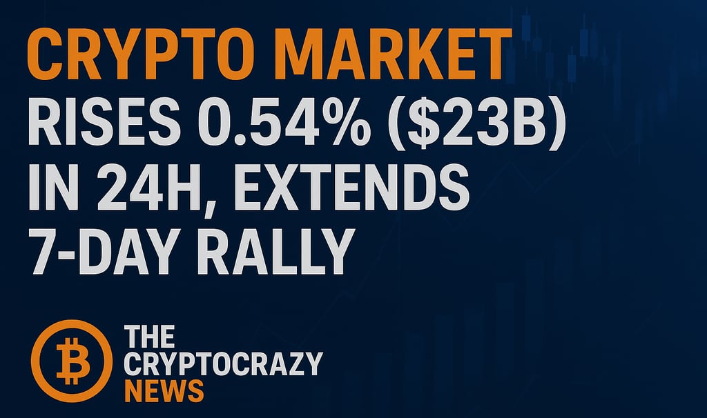 Crypto Market Rises 0.54% ($23B) in 24H, Extends 7-Day Rally